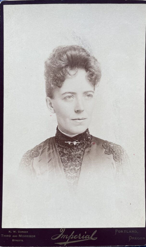 This portrait of Mrs. Barchus was produced by the Portland Imperial photographic company, which was located at N.W. Corner of Third and Morrison Streets, very close to her downtown studio. The company was only listed in the 1897 Portland City Directory, at which time she would have be 39 years old.
